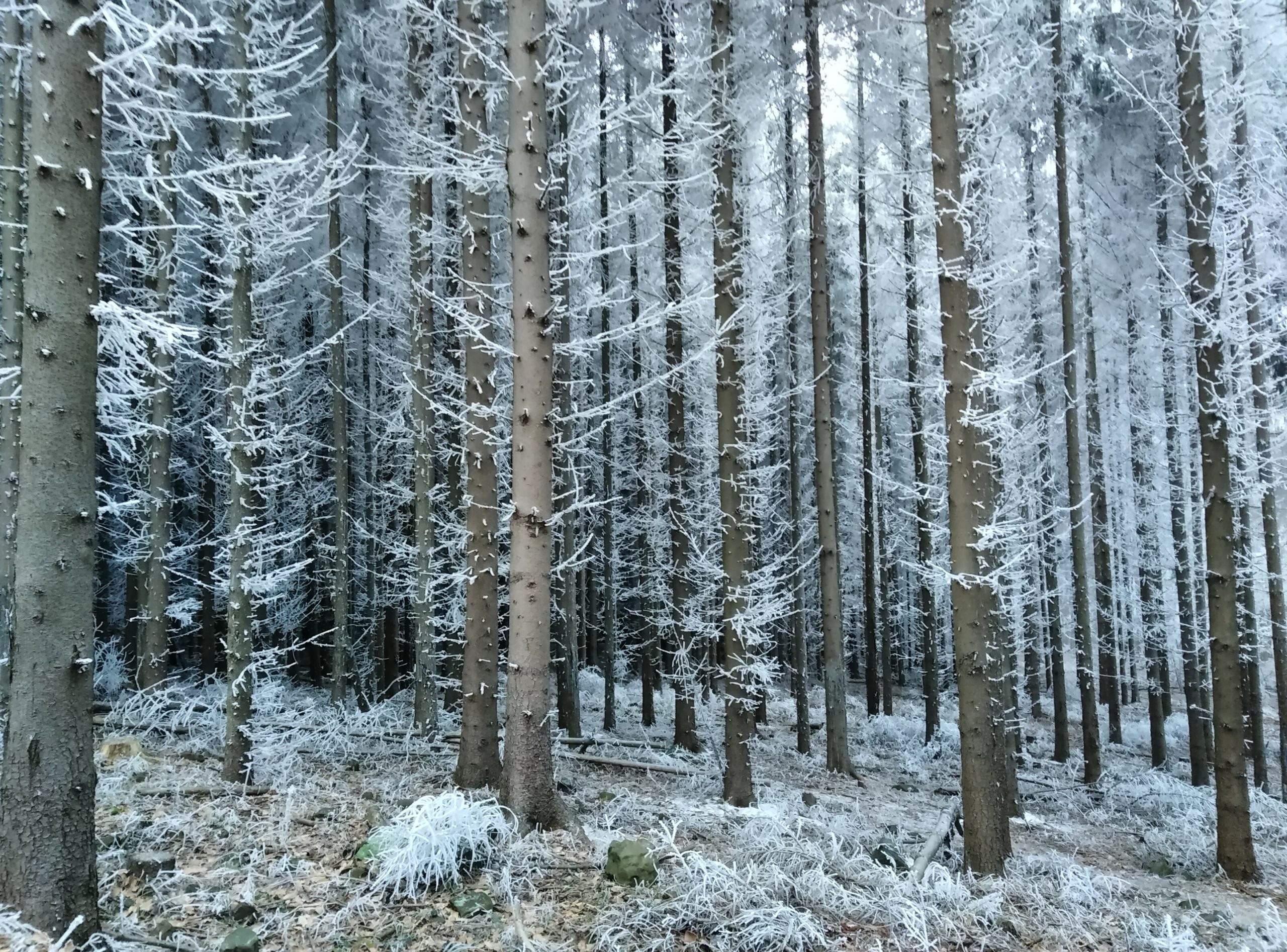 Még nincs hó, de minden gyönyörű hófehér és csillogó. Zúzmara ül a fákon és ropog a fagyos falevél a csizmám talpa alatt. Sétáltam az erdőben és közben gyönyörködtem a tájban, csodaszép téli mesevilág, amit a Mátra nyújt.