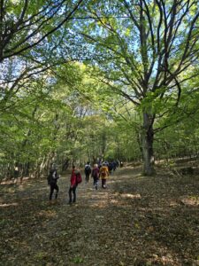 A túra a kedvenc útvonalamon (Mátraszentimre-Bagolyirtás-Fallóskút-Mátraszentimre) ment végig, ugyanakkor mégsem egyedül vittem a csapatot, hanem itt találkozott mindenki a férjemmel is, ő ment elöl, én pedig össze-vissza, és így tudtam kicsit beszélgetni mindenkivel – ahogy már előző este is tettem vacsoránál. Csoportkép is készült a túra közben – szuper, hogy nem felejtődött el! Nem izgultam, és ennek is kifejezetten örültem, el tudtam mondani mindent a nevetességekről, érdekességekről, amit akartam. Az erdőmerülésben pedig már tényleg van rutinom, az a program is úgy sikerült, ahogy szerettem volna, és még időben sikerült megérkeznünk a következő helyszínre is, ami 17 órától kezdődött.